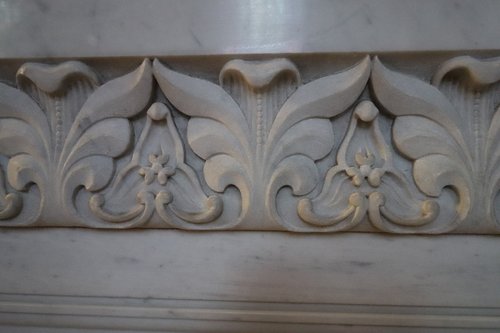 Look at the finely carved wood, the delicate roses, or even the geometric of the mosaic.