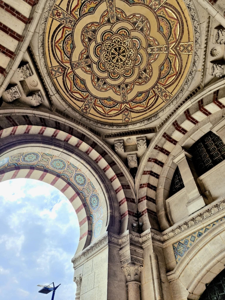 The basilica's vibrant colors are deeply inspired by his time in Algeria.