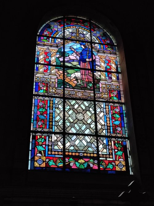 When you are facing the statue, two stained-glass windows from 1929 by Jacques Grüber depict, on the left, the shepherd finding the sheep, and on the right, the cart contest. Since then, the Basilica has been named Notre-Dame de Brebières, to pay tribute to the sheep that helped to discover the statue. (Brebières comes from the name brebis in French which means sheep).