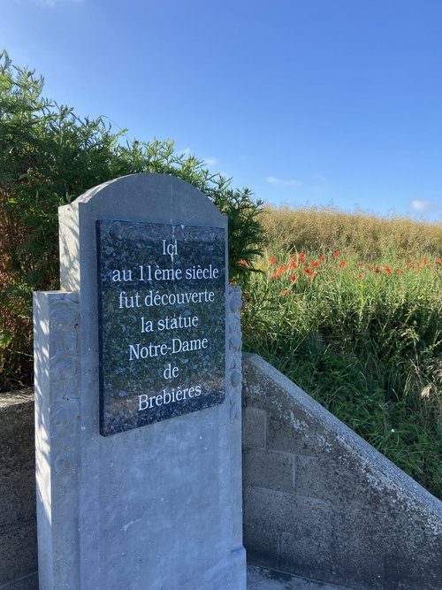 Surprised the shepherd approached and tapped the ground with his crook to scold the sheep. At the same time he heard a mysterious voice saying : "Stop it shepherd, you are hurting me" Astonished he started to dig and he discovered a statue of Notre-Dame with the mark of the knock on the forehead. He was so moved by this miraculous discovery that he decided to bring the statue back with him thinking that everybody would cheer him on.